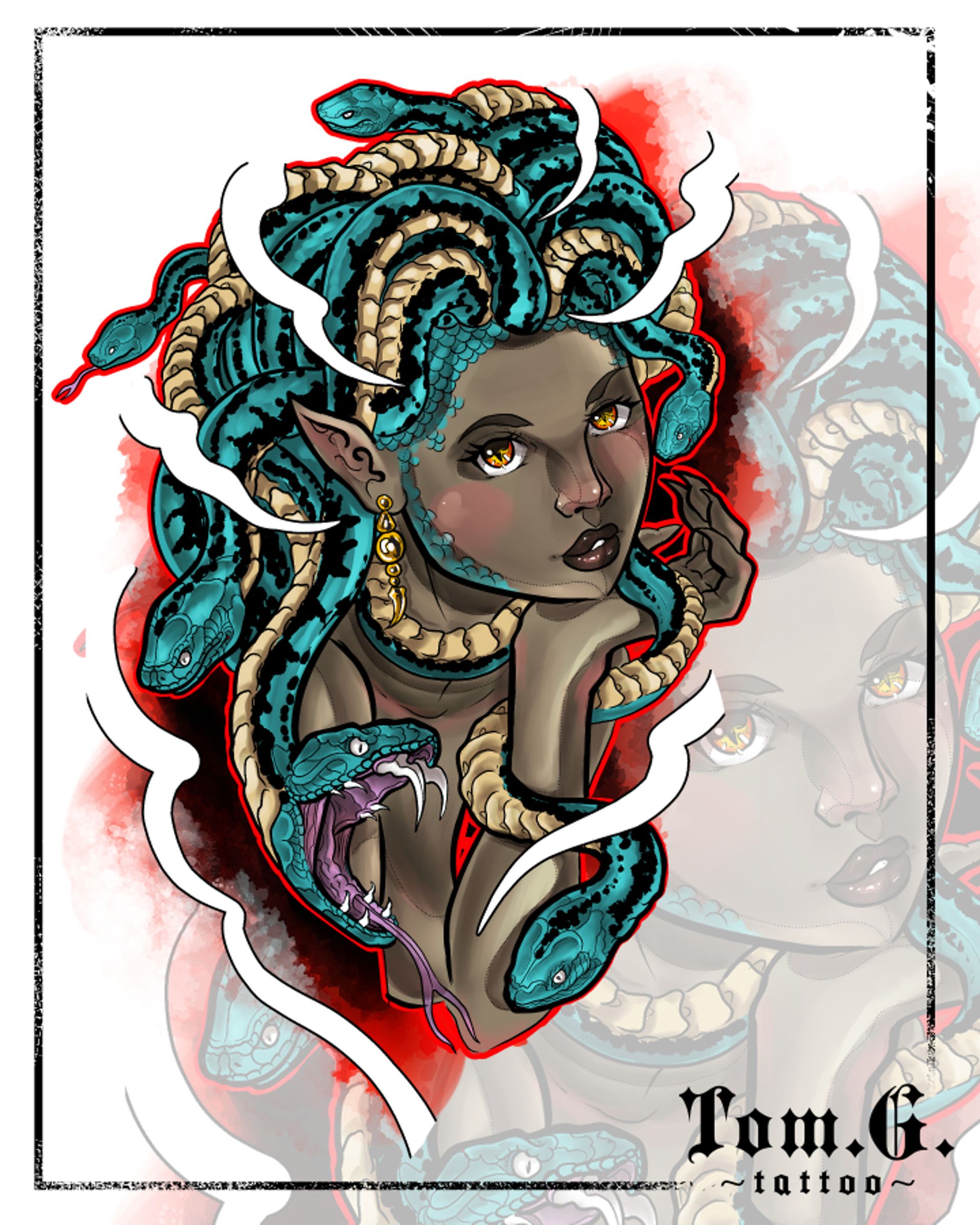 Medusa Tattoo Flash Design by Tom G Tattoo